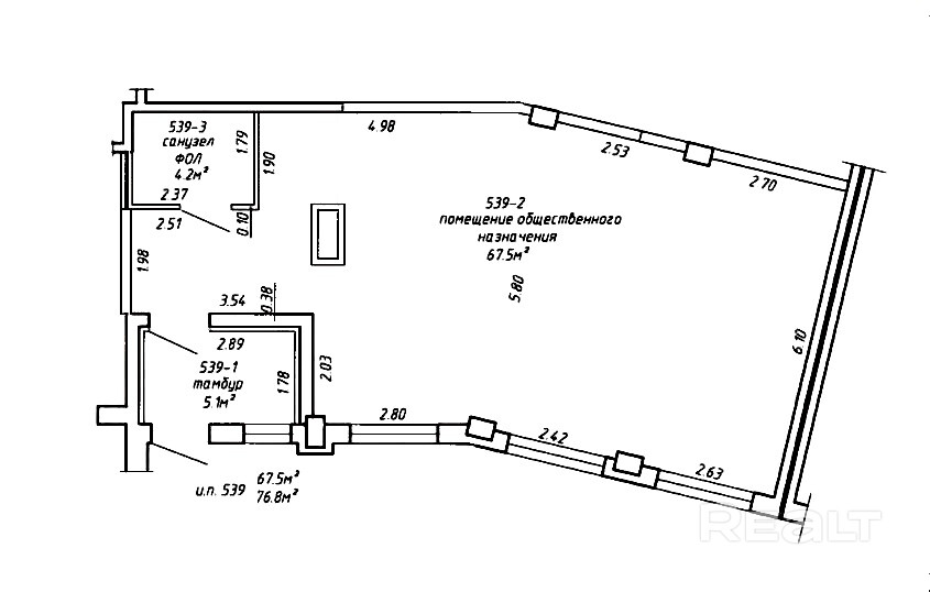 Помещение с санузлом, имеется возможность вывода воды и канализации для парикмахерских, салонов красоты и пр.