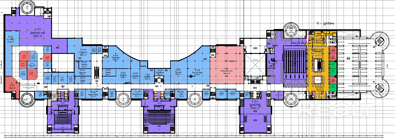 Помещения для зоны фуд-корта расположены на 3-м этаже. В аренду предлагаются площади от 33,6м2.