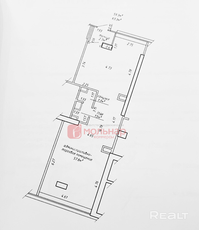 Аренда помещения 63 м2 по ул. Кропоткина, 59 (ЖК Фарфоровый)