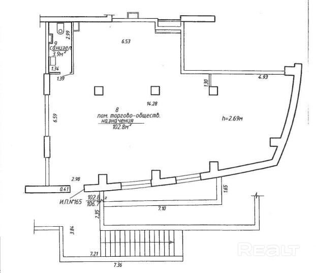 Торговое помещение общей площадью 106,7 кв.м располагается на цокольном этаже многоэтажного жилого дома по Сморговскому тракту, 3.