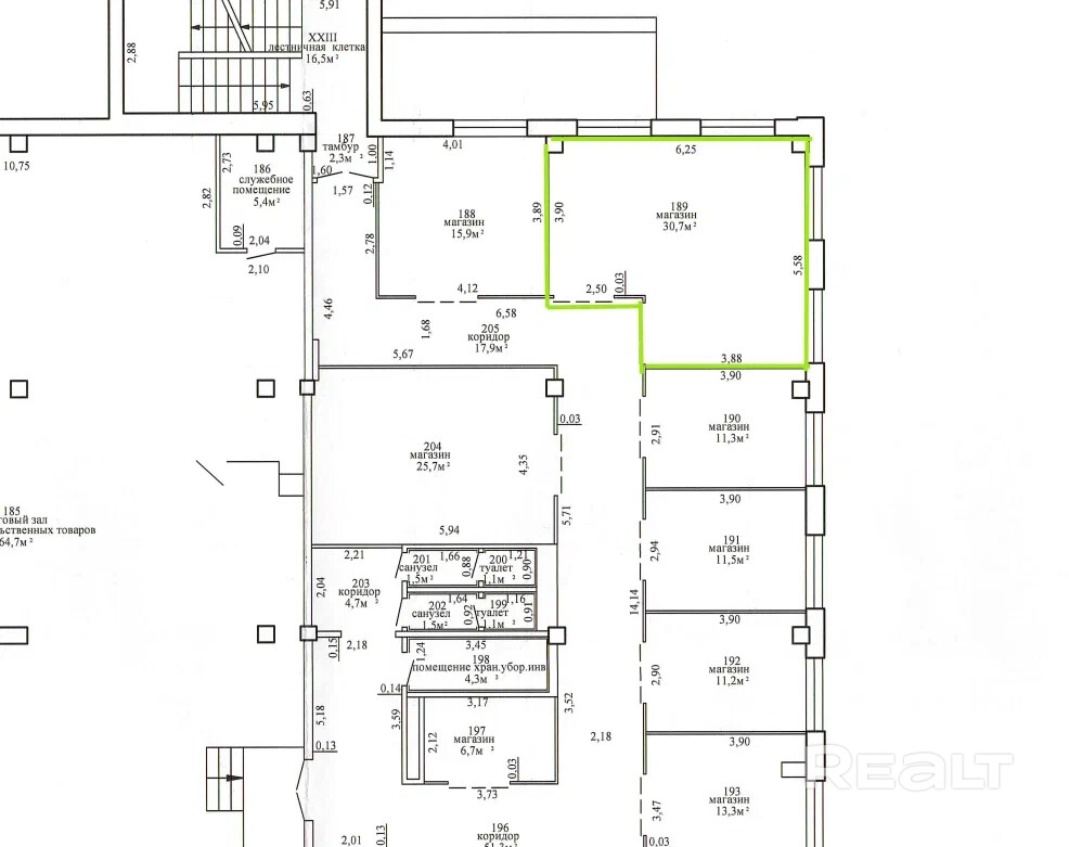 Аренда торгового помещения 30,7 м2 в ТЦ "Маяк" г. Слуцк