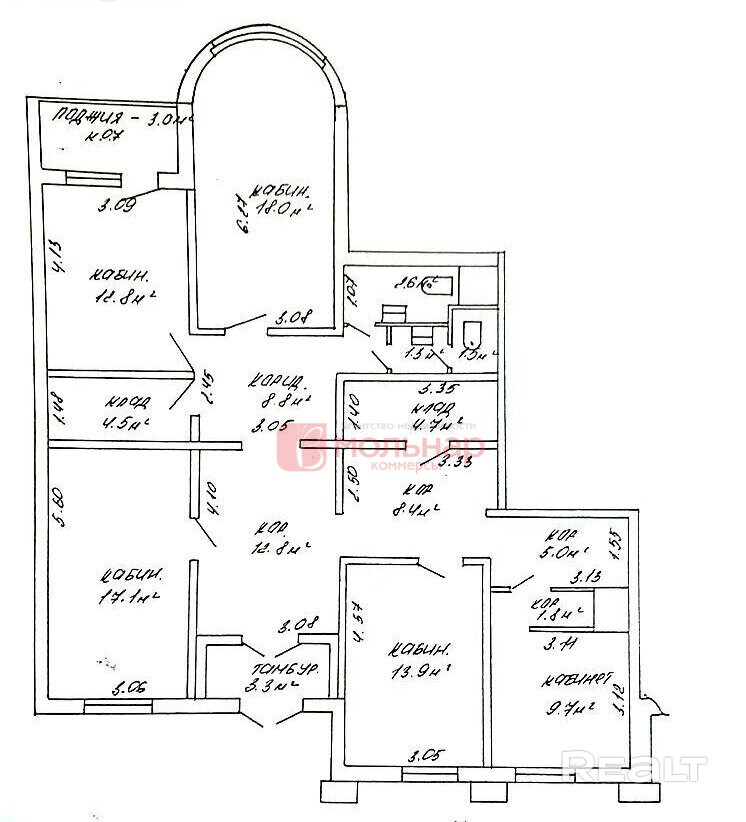 Сдается в аренду помещение общей площадью 129.2 м2, расположенное на первом этаже жилого дома, находящегося по адресу г. Минск, ул. Лещинского, 55. Дом находится в плотной жилой застройке, в месте с хорошей проходимостью. Само помещение смотрит на остановку общественного транспорта. Помещение состоит из 5 отдельных кабинетов, два санузла, кухни, двух кладовых для хранения. В помещении естественное освещение, электричество, отопление, водоснабжение, интернет и пожарная сигнализация. Доступ 24/7. Размер арендной ставки составляет 15 дол. с учетом НДС. Вы не оплачиваете услугу риэлтерской организации.