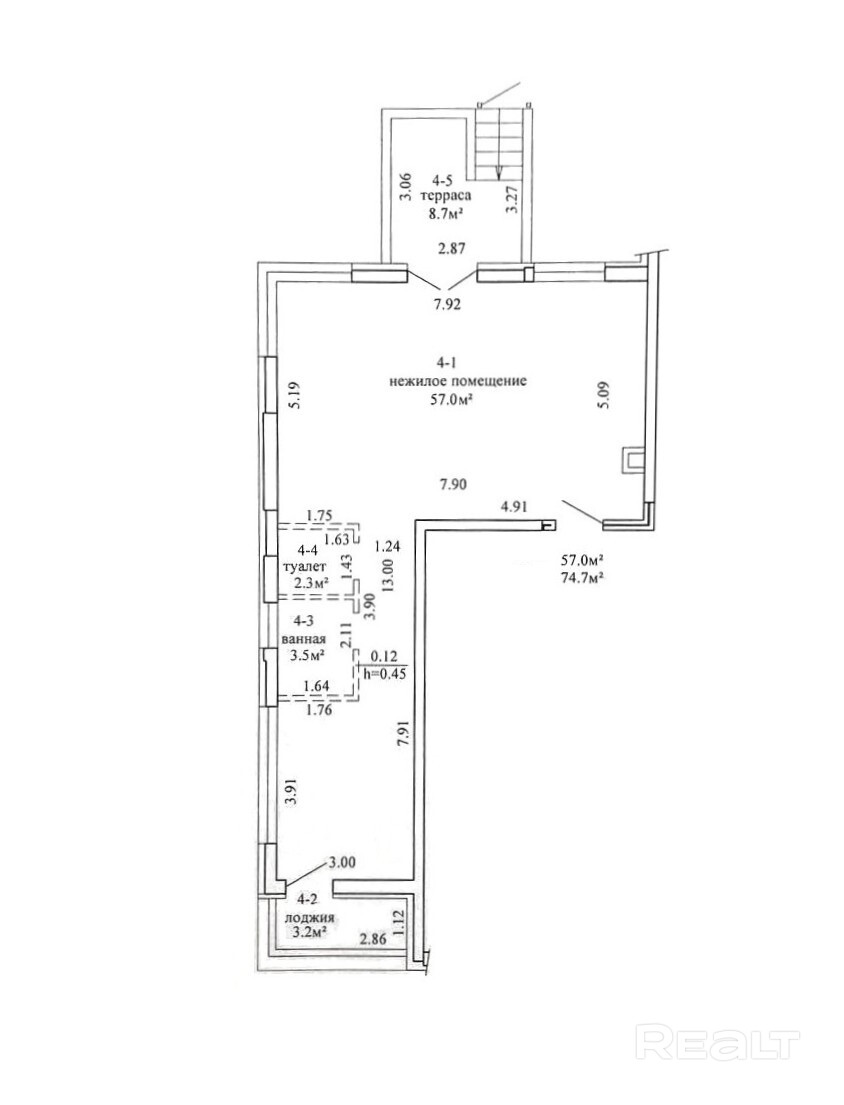 Целевое назначение – торговое помещение. Общая площадь помещения 74,7 кв. метра.