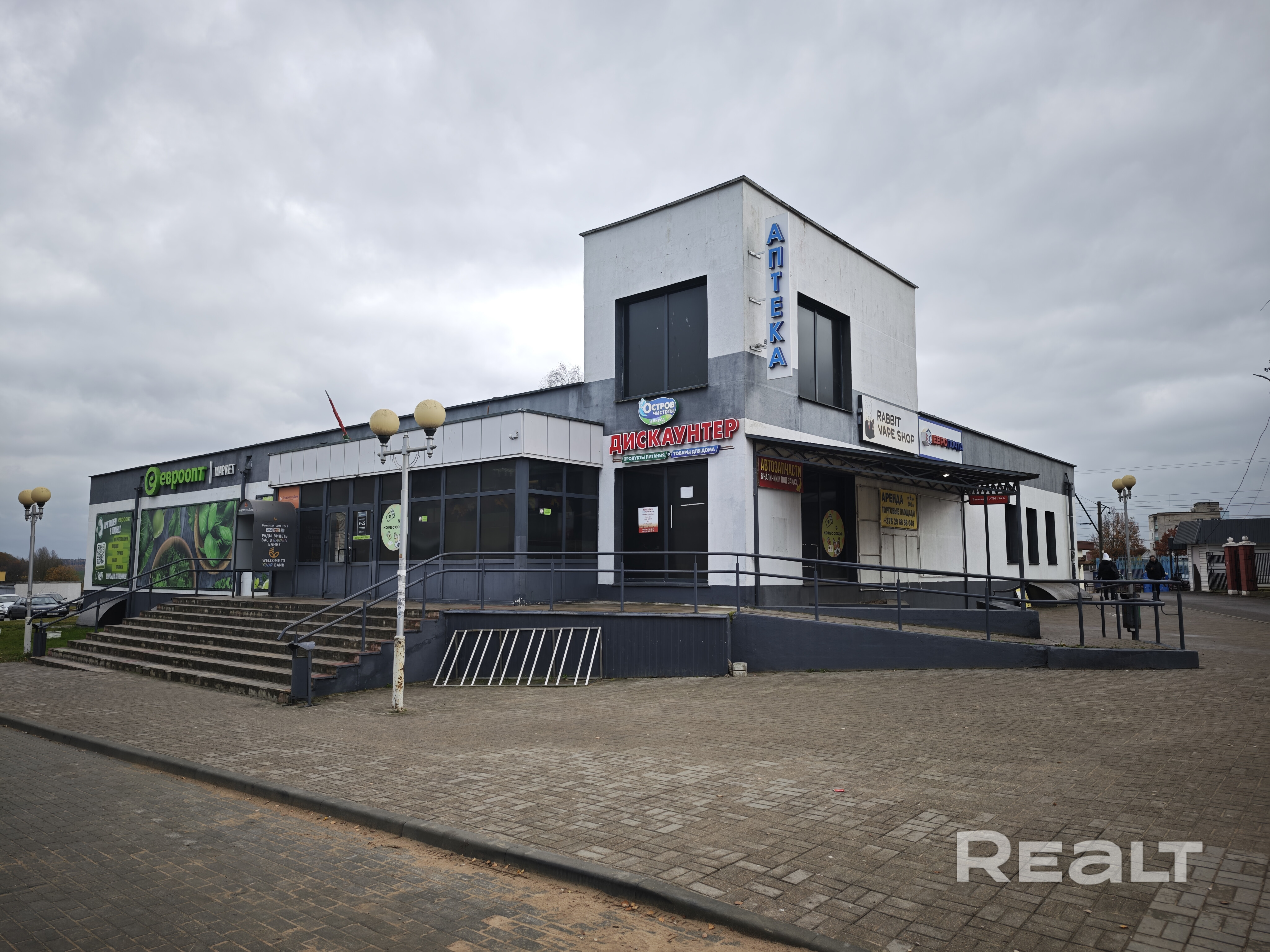 Расположен в г. Смолевичи ул. 50 лет Октября 4. Раньше был магазин "Остров чистоты". Площадь 218 м2. Полностью укомплектован торговым оборудованием, видеонаблюдение, аудиосистема. В здании находятся: магазин "Евроопт", аптека, цветы , "Европочта", магазин автозапчастей. Рядом находятся: остановочный железнодорожный пункт "Заречное"-10м, автостанция- 20 м, школа-200м, городской стадион-200м, детский сад-350м.