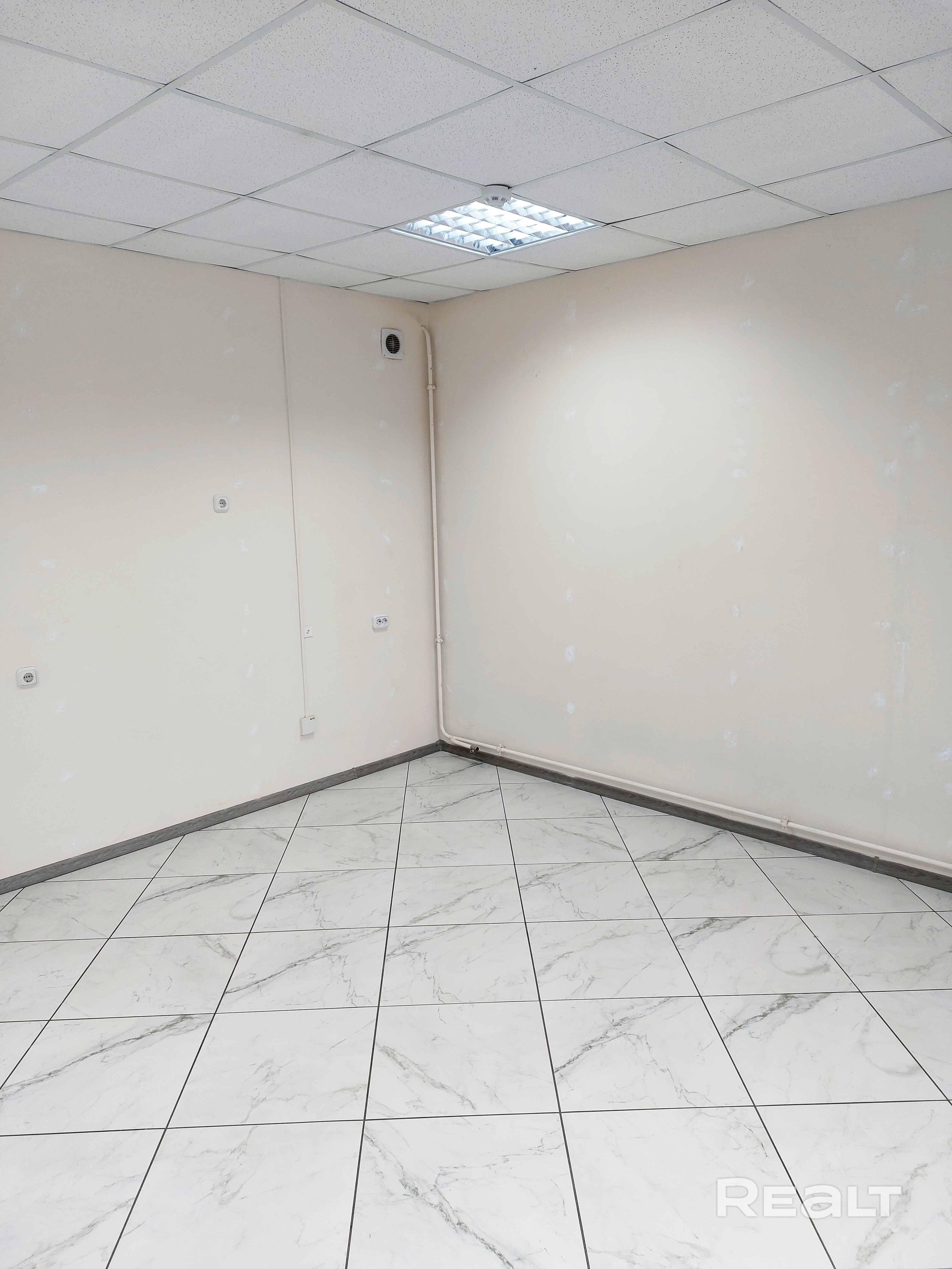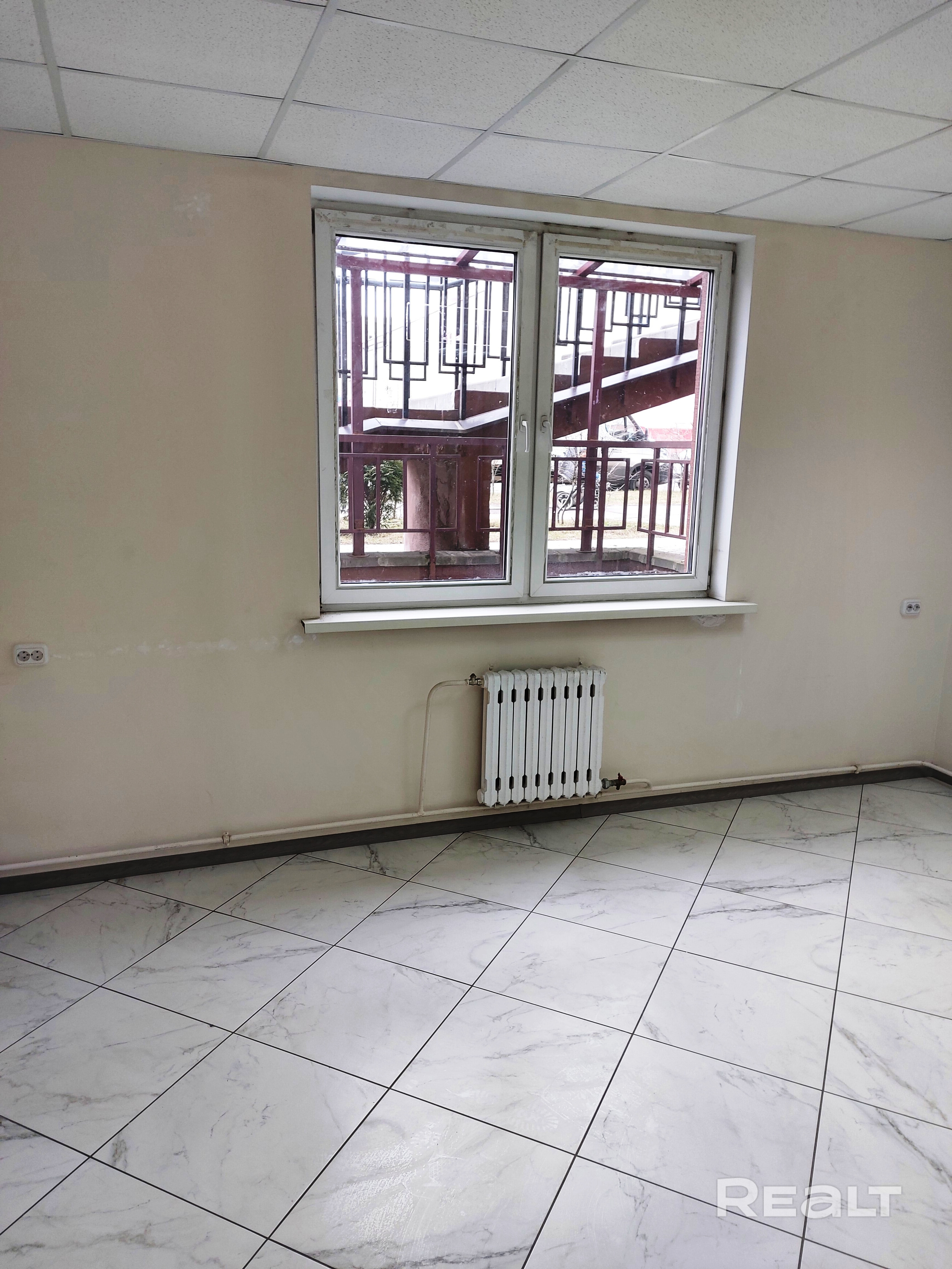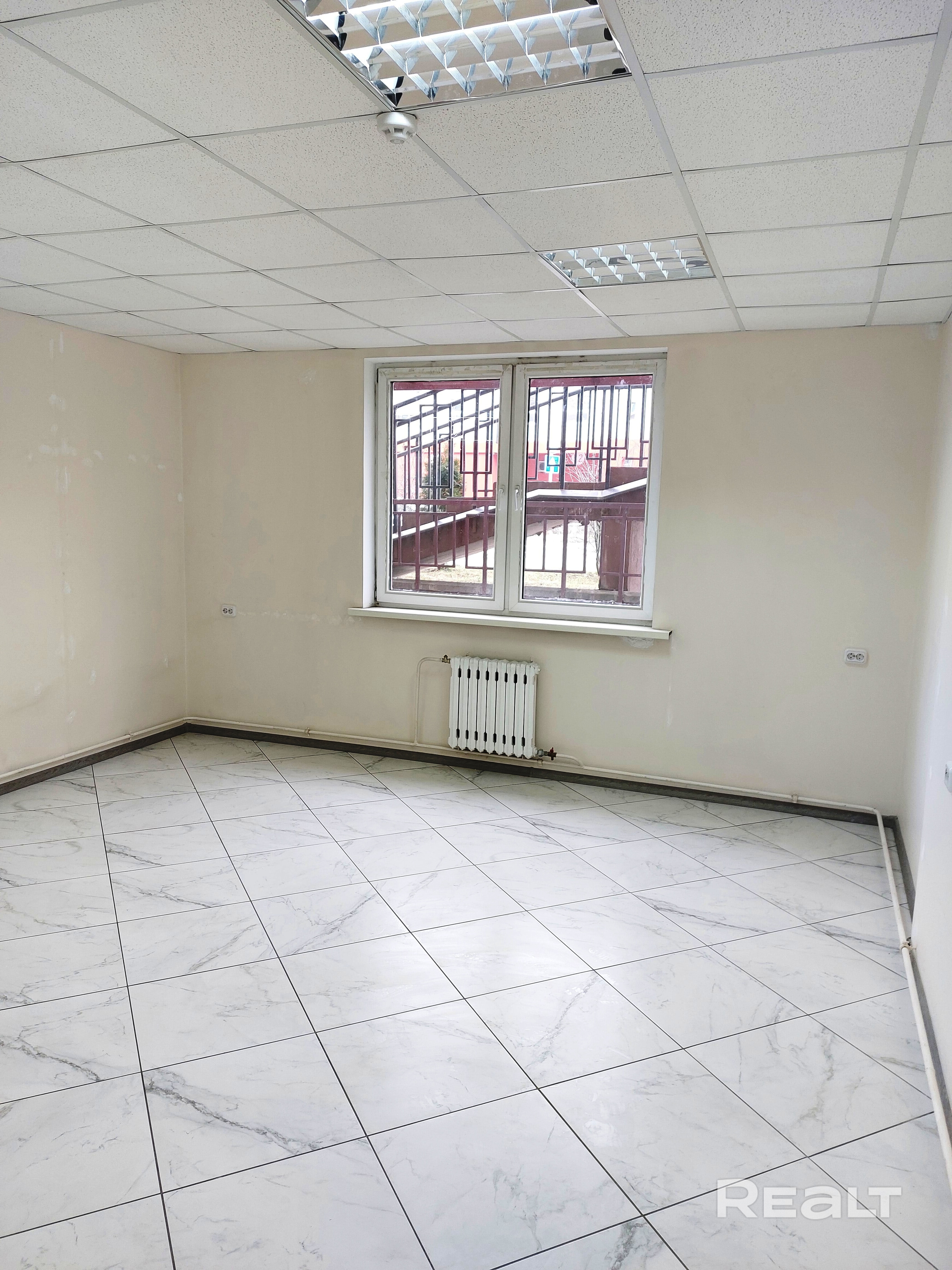 Имеется окно (естественное освещение). На полу плитка. Потолок подвесной. Стены окрашены. Проведено оптоволокно. Помещение готово к эксплуатации. Санузел (рядом) в двух метрах от нашего офиса.