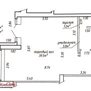 Помещение располагается на первом этаже, имеет отдельный вход. Общая площадь – 43,7 кв.м., в то числе: торговый зал – 39,5 кв.м., умывальная – 3,0 кв.м., туалет – 1,2 кв.м. На полу плитка, на стенах – декоративная штукатурка.
