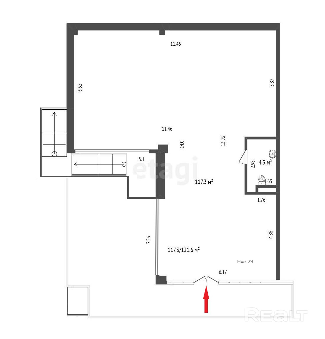 ► Высокие потолки – 3,29м