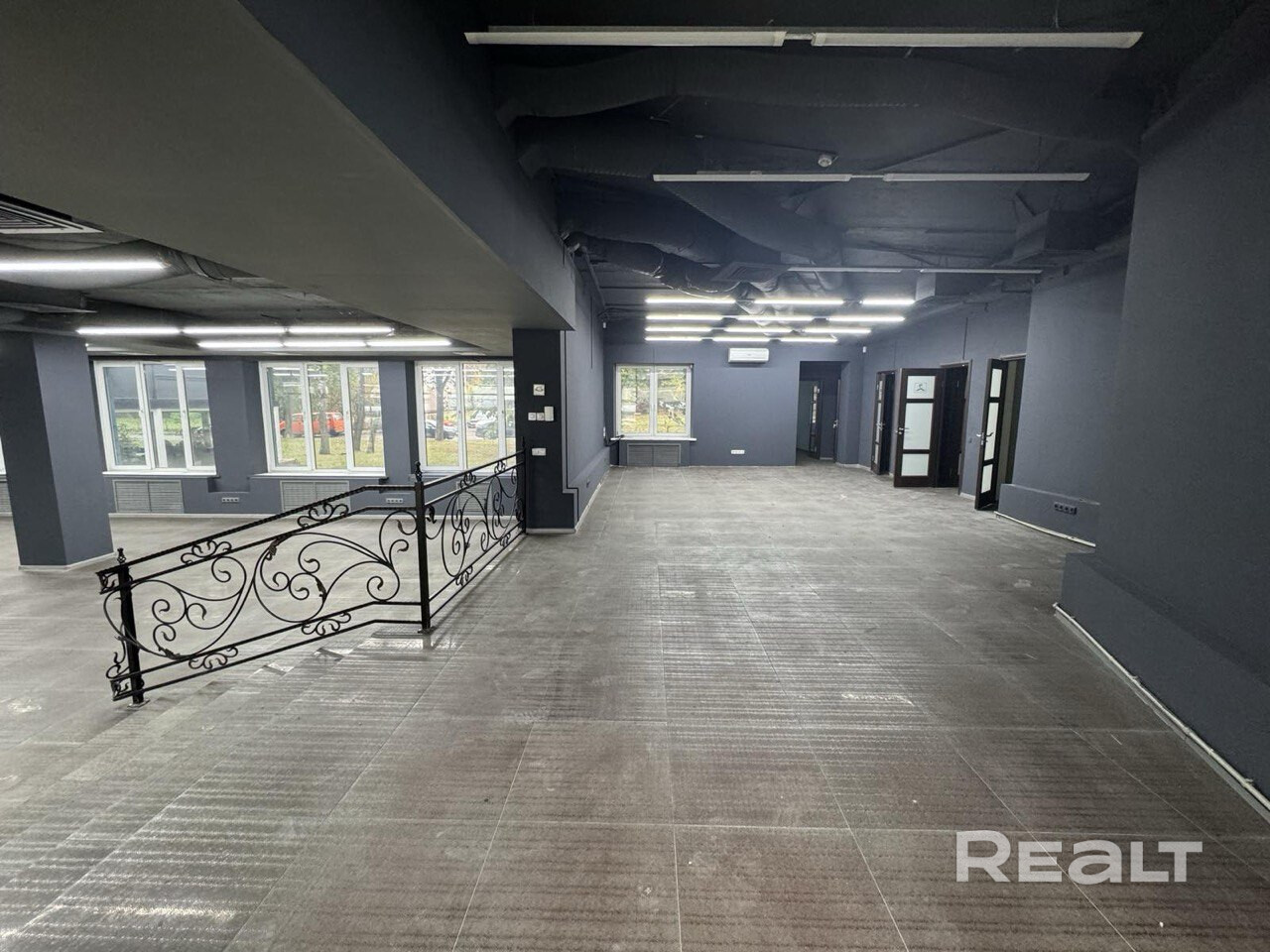 Помещение располагается на первом этаже 12- этажного здания. Большие панорамные окна в пол обращены на оживленную ул. Кульман и ТЦ Монеточка, в непосредственной близости с Комаровским рынком, Домом мебели, паркингом, ст.м. площадь Якуба Коласа.