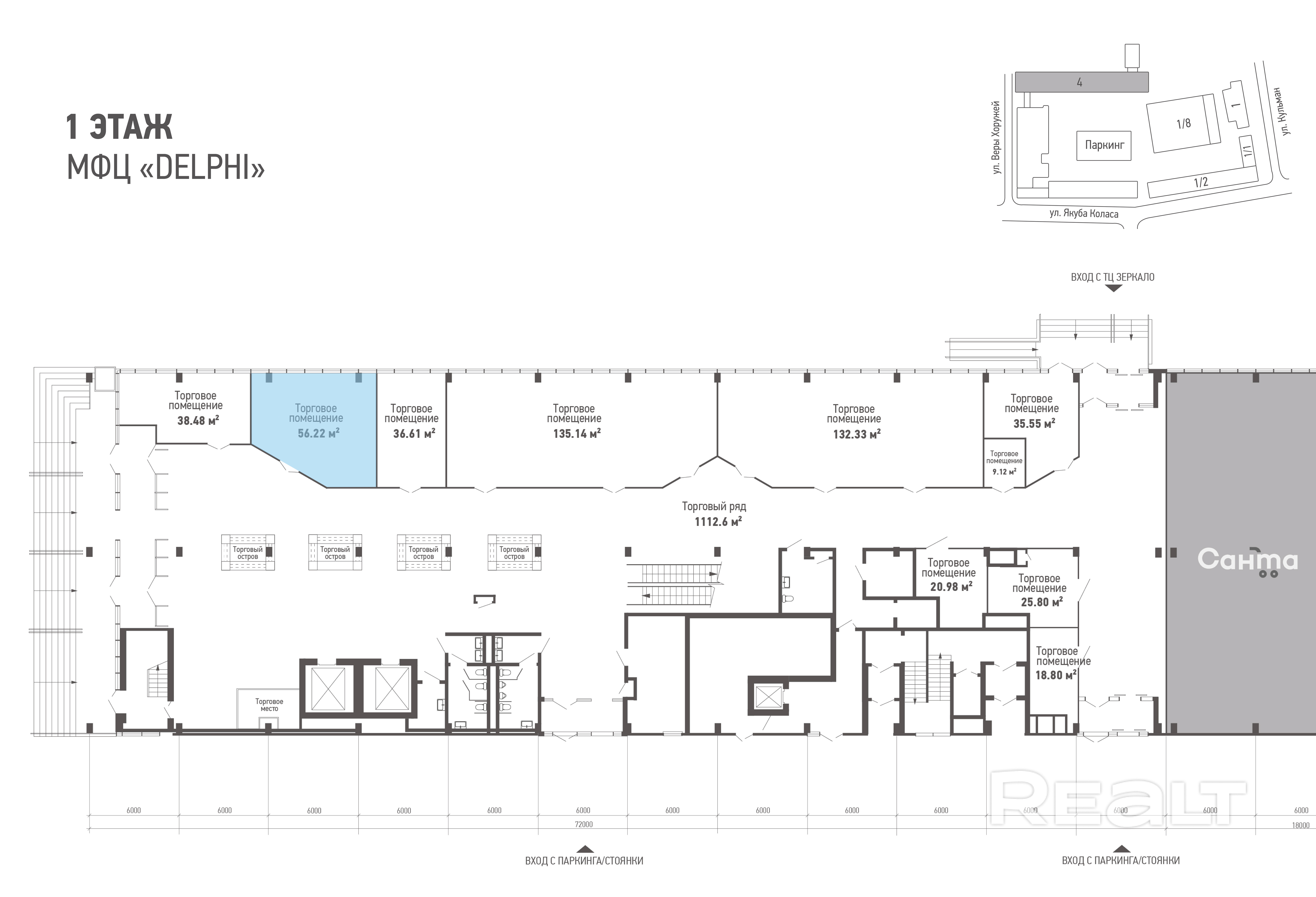 Аренда торгового помещения 56,22 м2 в МФЦ DELPHI в самом центре, ст.м. Якуба Коласа