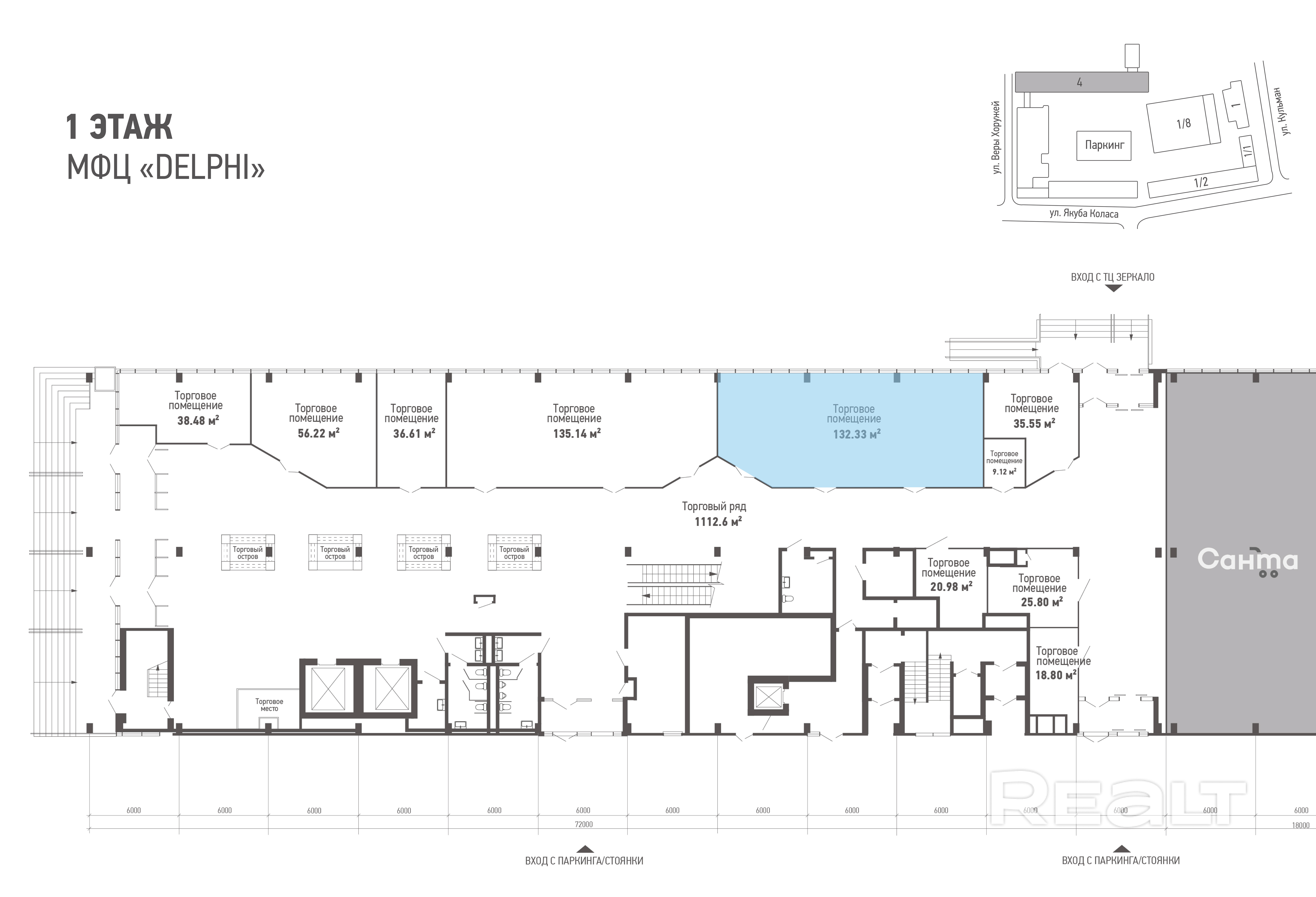 Аренда торгового помещения 132,33 м2 в МФЦ DELPHI в самом центре, ст.м. Якуба Коласа