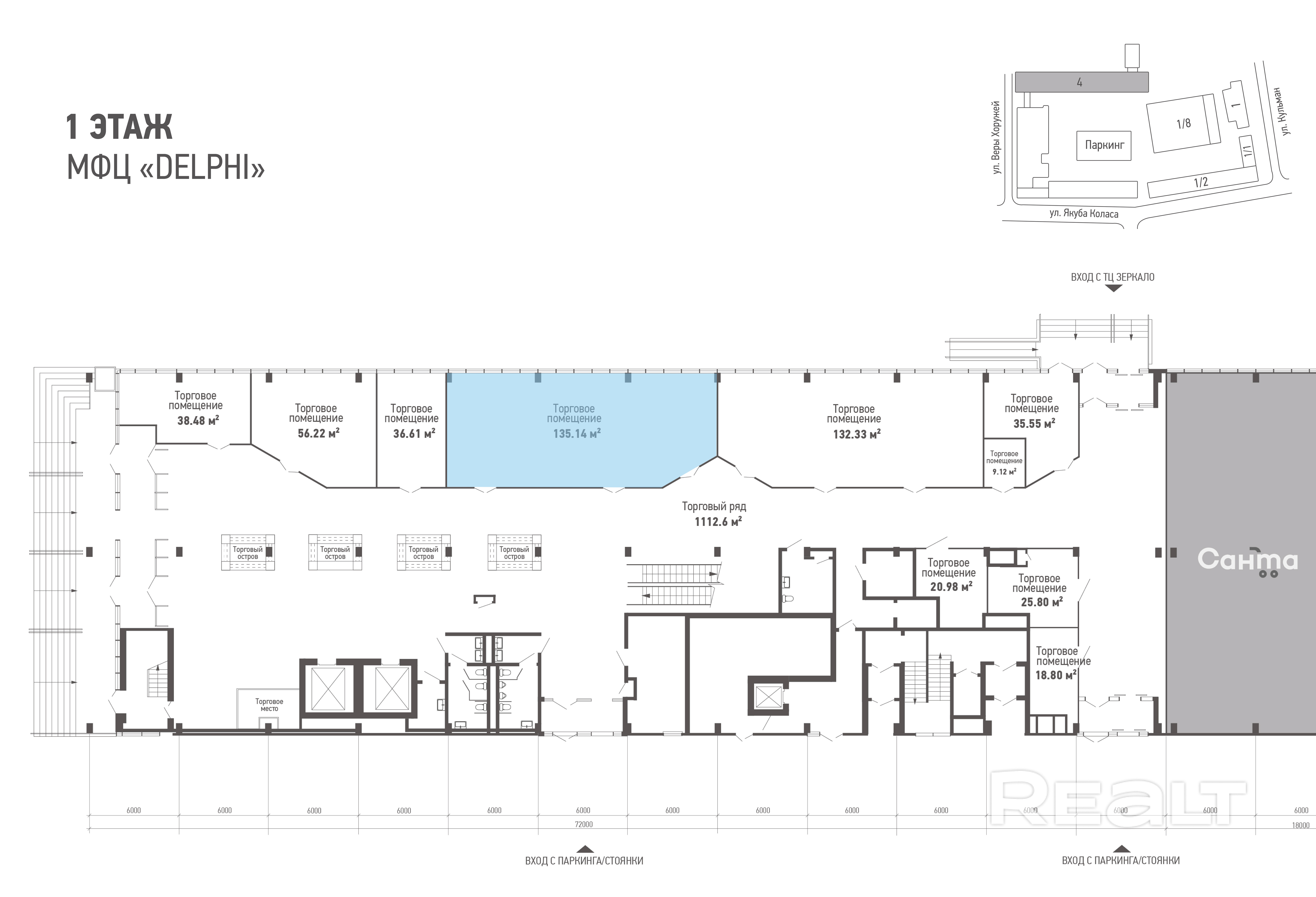 Аренда торгового помещения 135,14 м2 в МФЦ DELPHI в самом центре, ст.м. Якуба Коласа