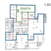 1-й этаж – 640 м2 (торговое - 230 м2, рампа - 176 м2, склады - 160 м2 (от 9.9 м2 ) вспомогательные – 52.6 м2 , (от 10.0 м2)