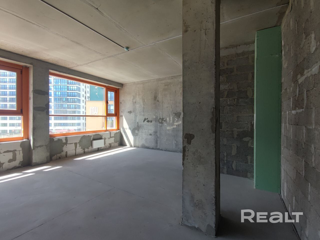 Помещение без отделки, можете смело осуществлять собственные дизайнерские решения.