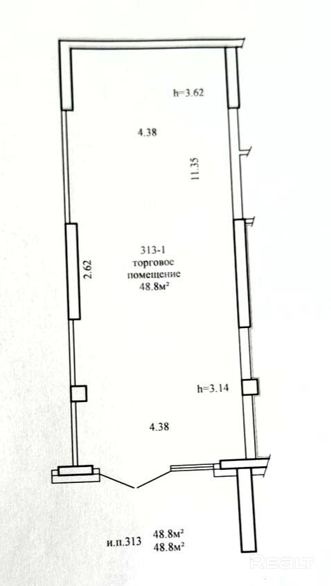 - Площадь 48,8 м2, высота потолков 3,6 м;