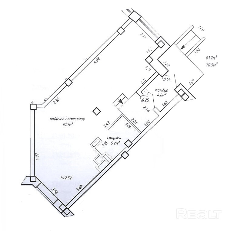 ► Высота потолка – 2,52м