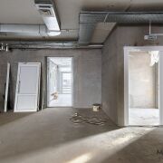 Проведены коммуникации: электроснабжение, отопление, пожарная сигнализация, приточно-вытяжная вентиляция, скоростной интернет.