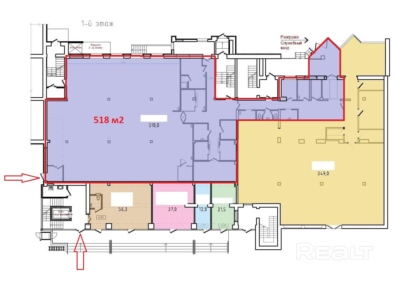 Помещение общей площадью 200 - 518 м2 располагается на 1-м этаже, по адресу, ул. Притыцкого 146.