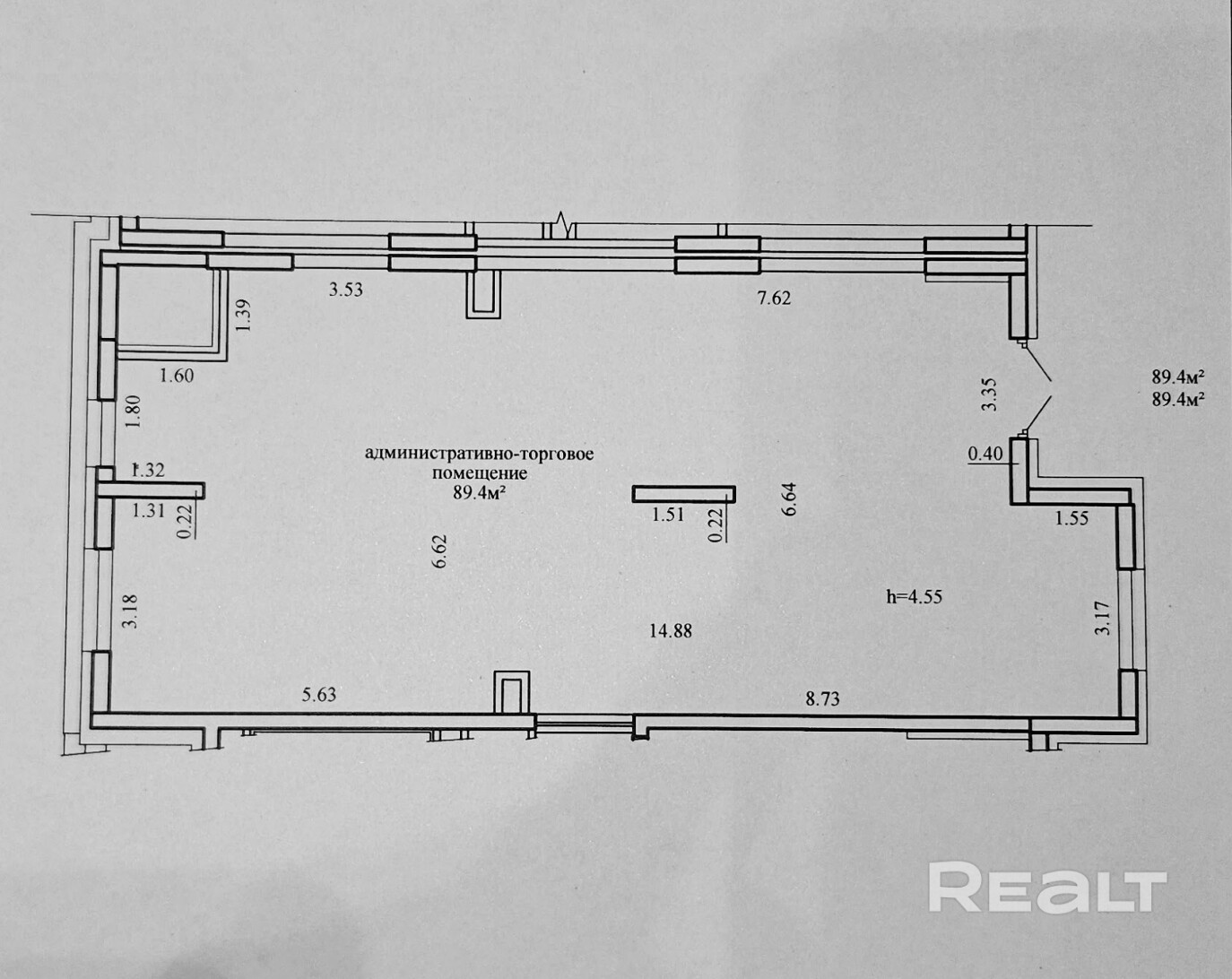Сдаются в аренду помещения площадью 62,8 м2 и 89,4 м2 (на планировке помещения 1 и 4 соответственно) в ЖК «Минск-Мир» по адресу ул. Савицкого,23.