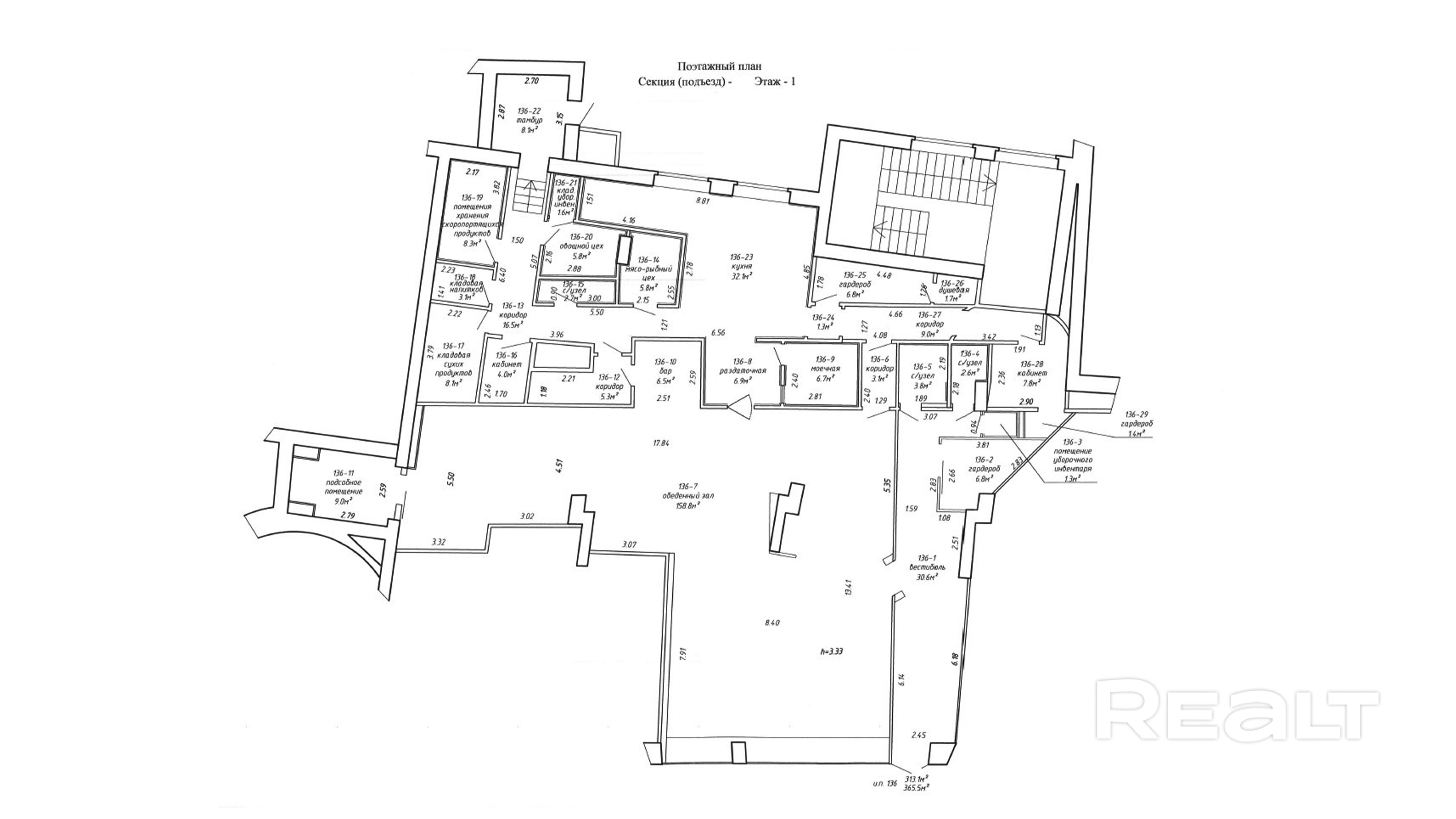 - Общая площадь помещения – 365,5 м2