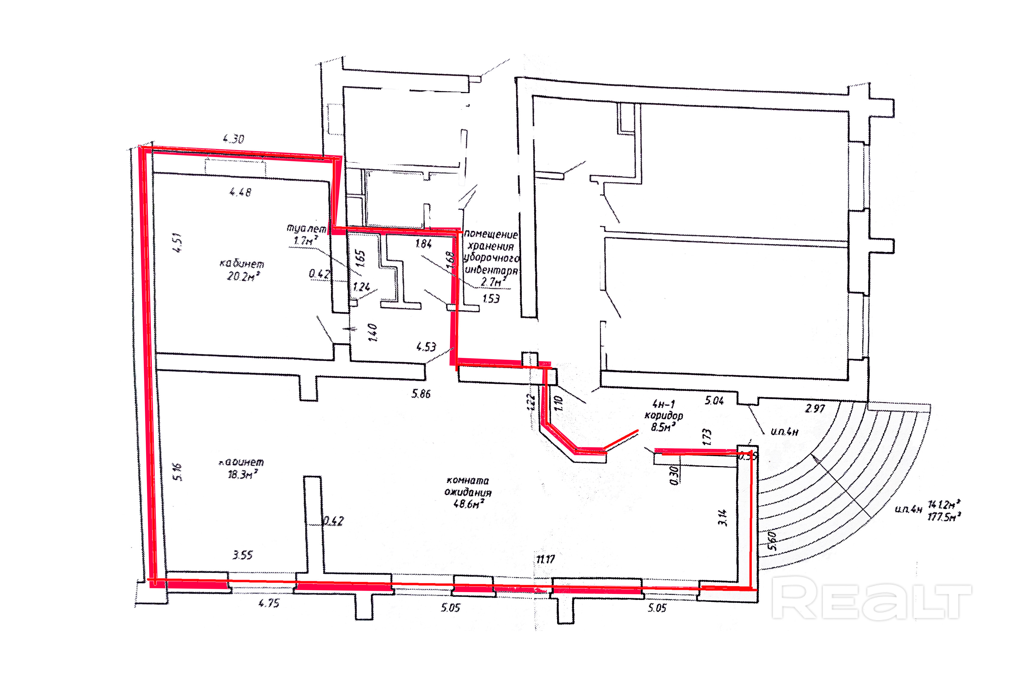 Аренда помещения площадью 102,1 м2 с отдельным входом по адресу: пр.Партизанский, 45. Включает основной зал 60 м2, кабинет 20,2 м2, помещение 2,7 м2 и собственный санузел.