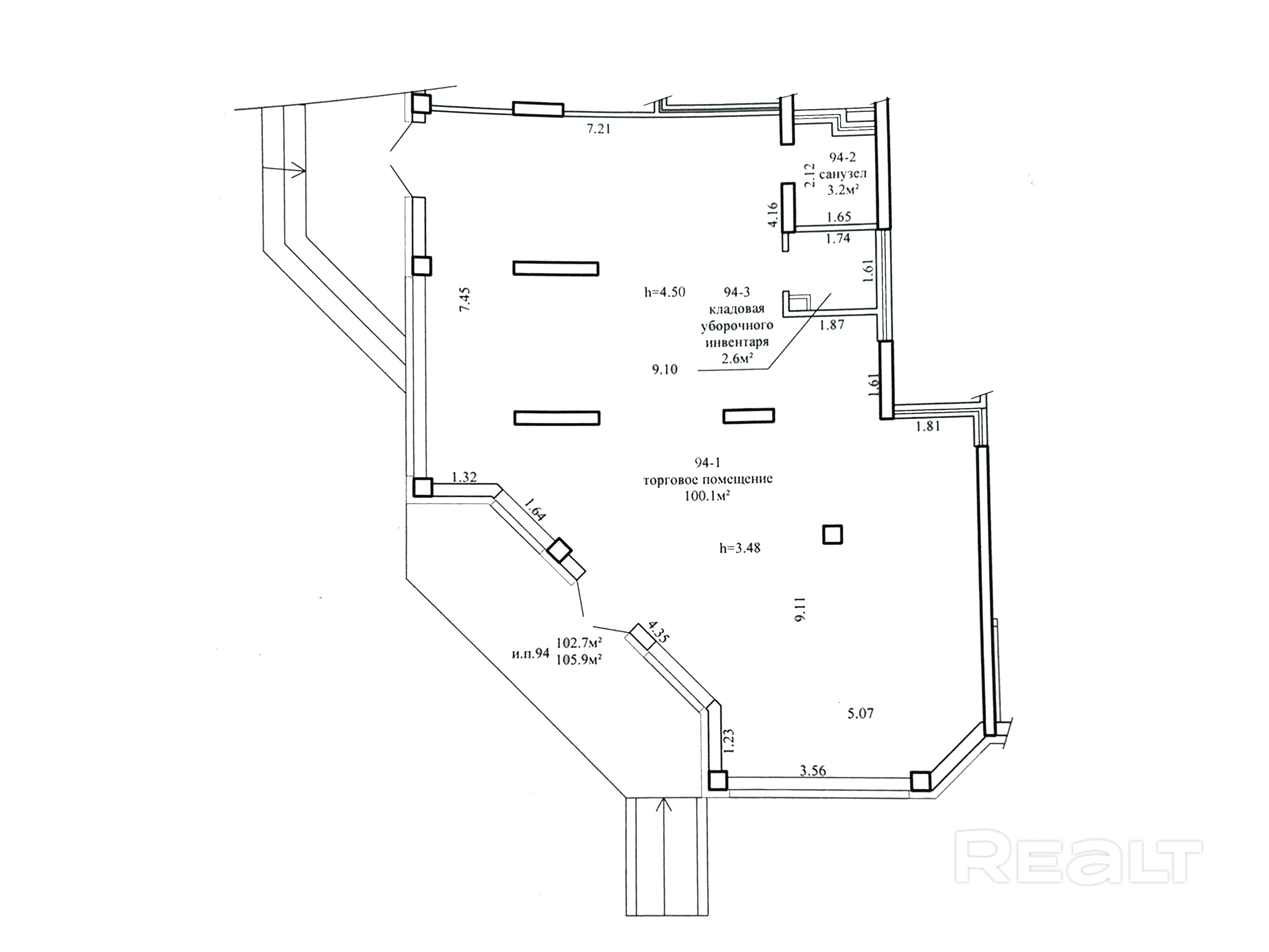 Высота потолка h=4,5 метра и h=3,48