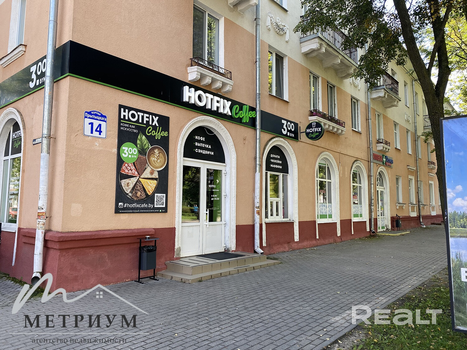 Адрес: ул. Притыцкого, 14 (пересечение с ул. Волынца). Расположение: пешеходная улица, рядом центральная площадь, кинотеатр «Родина», банк, ж/д и автовокзал, «Парк Победы». Остановки общественного транспорта в шаговой доступности.