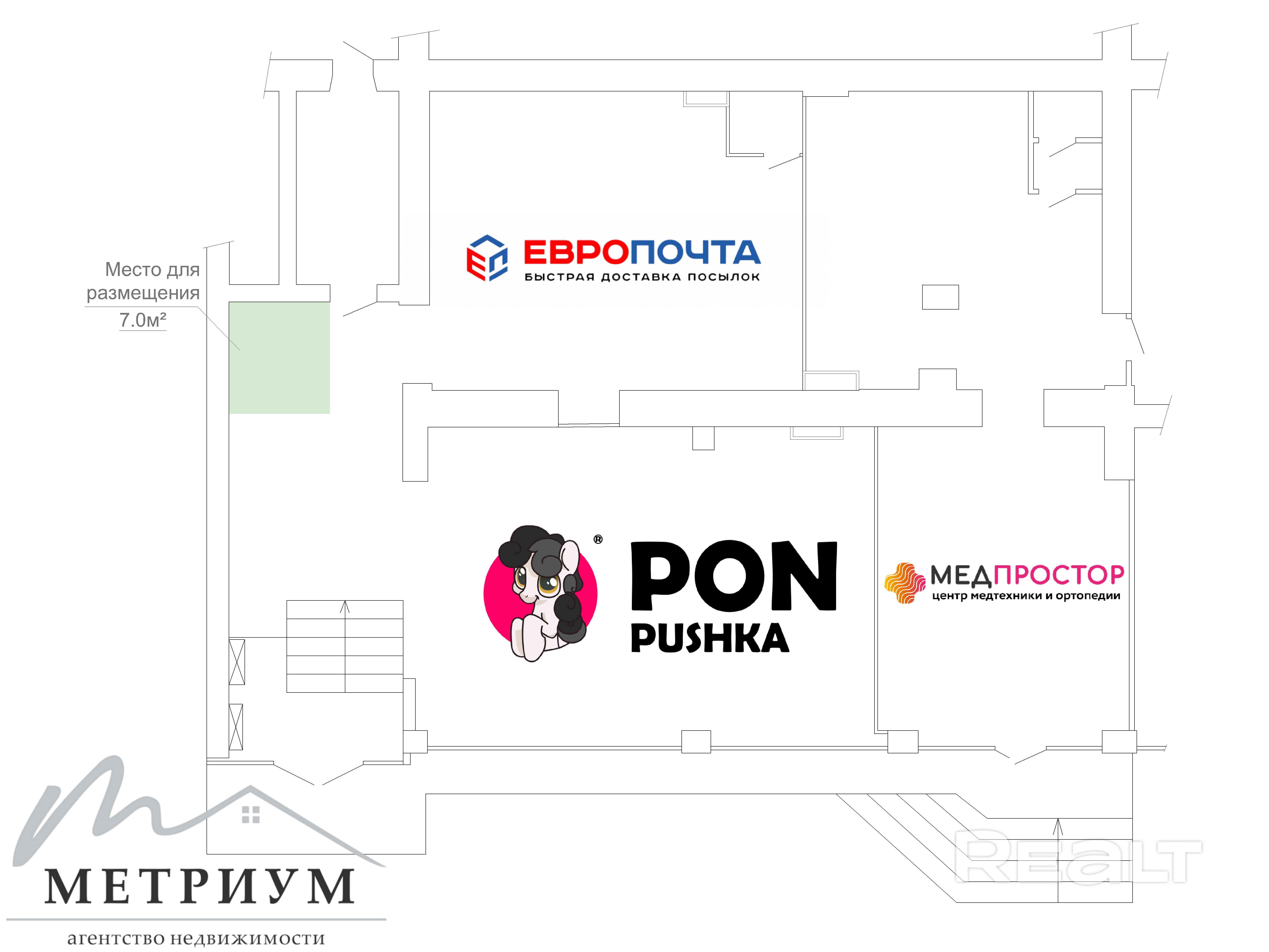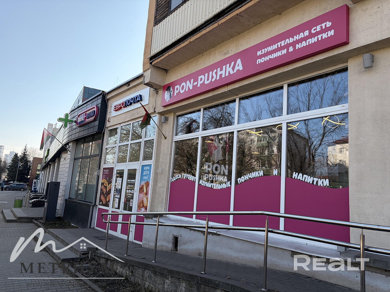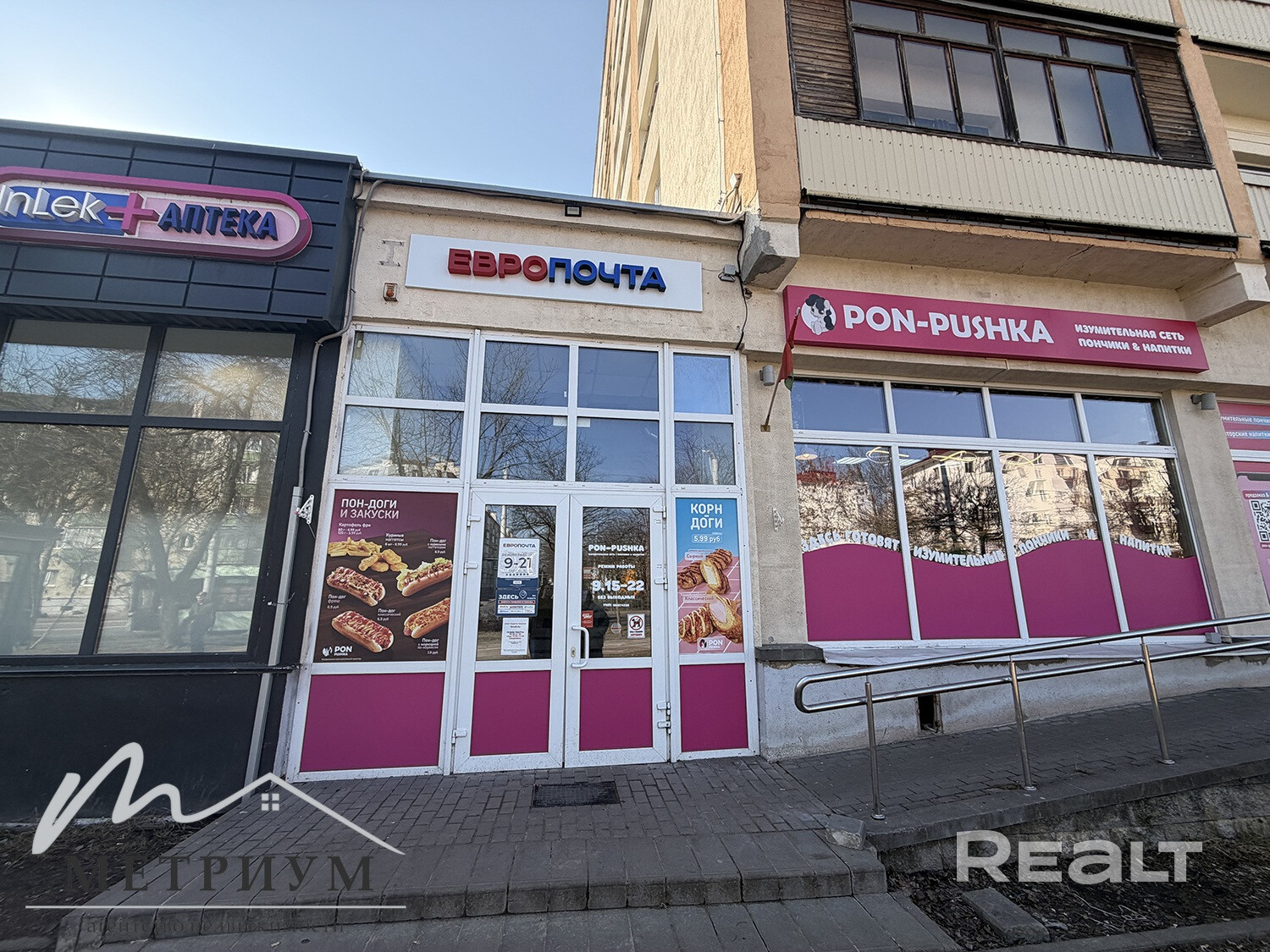 В аренду сдается место для небольшого торгового островка или автомата по адресу ул. В. Хоружей, 31. Прикассовая зона, рядом расположены ПВЗ Европочта и пончиковая Понпушка. В соседних помещениях представлены магазин продуктов «Евроопт», аптека, пекарня. Здание находится в густонаселенном районе, на перекрестке ул. В. Хоружей и бульвара Шевченко. Есть возможность разметить рекламу на фасаде здания.