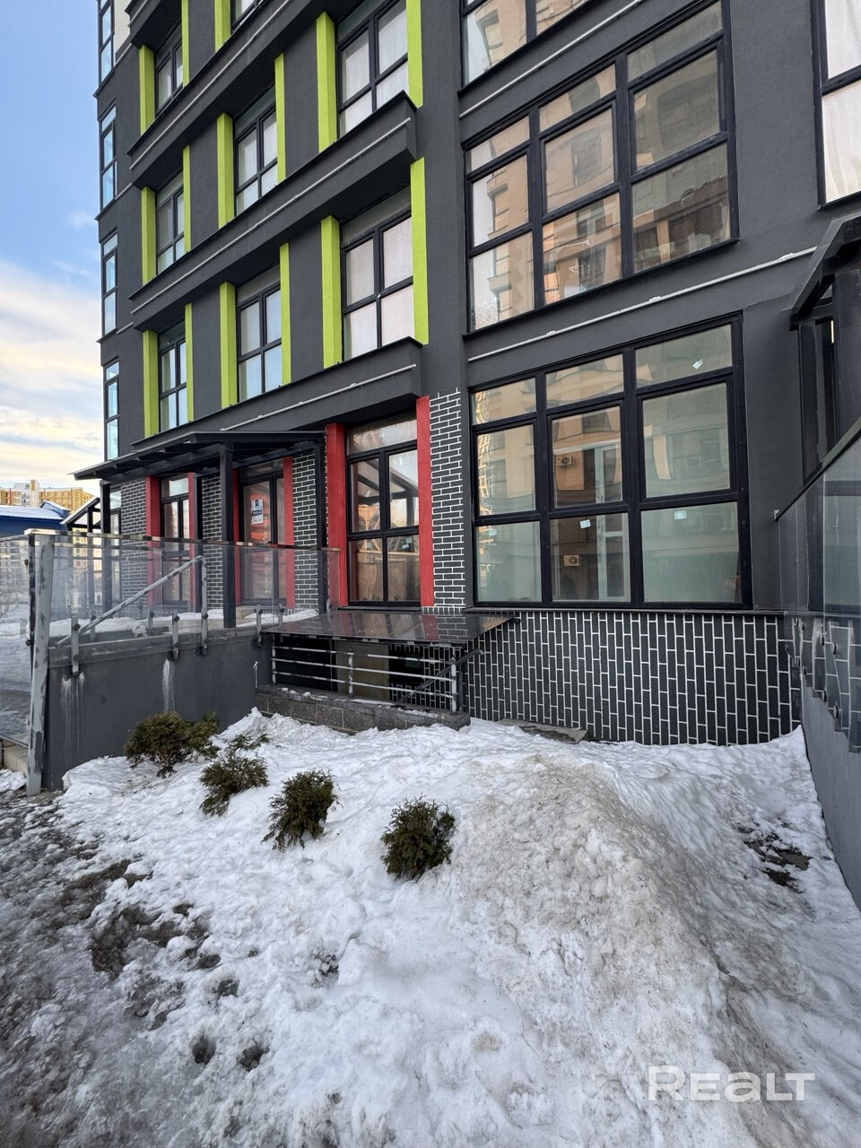 Помещение имеет 2 входа и основной на улицу Теслы с видом на здание Аэропорта. Центральная густо заселенная частью Минск мира. Интенсивный трафик людей. Рядом метро.