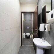 Выполнен хороший ремонт, 2 вывода воды: в комнате персонала и в самом помещении. Санузел находится напротив входа в помещение.