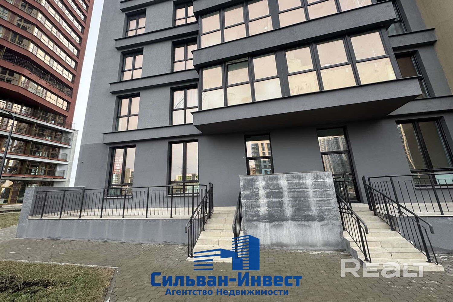 Располагается на первом этаже нового 25 - этажного жилого дома 2023 года постройки. Панорамные окна, смотрят на дорогу.