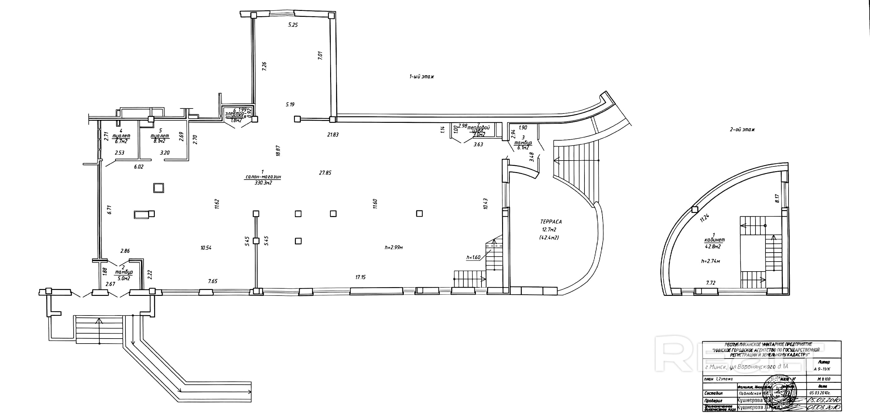 Помещение 403,8 - это большой торговый зал и кабинет на 2-м этаже 42,8 м.кв.