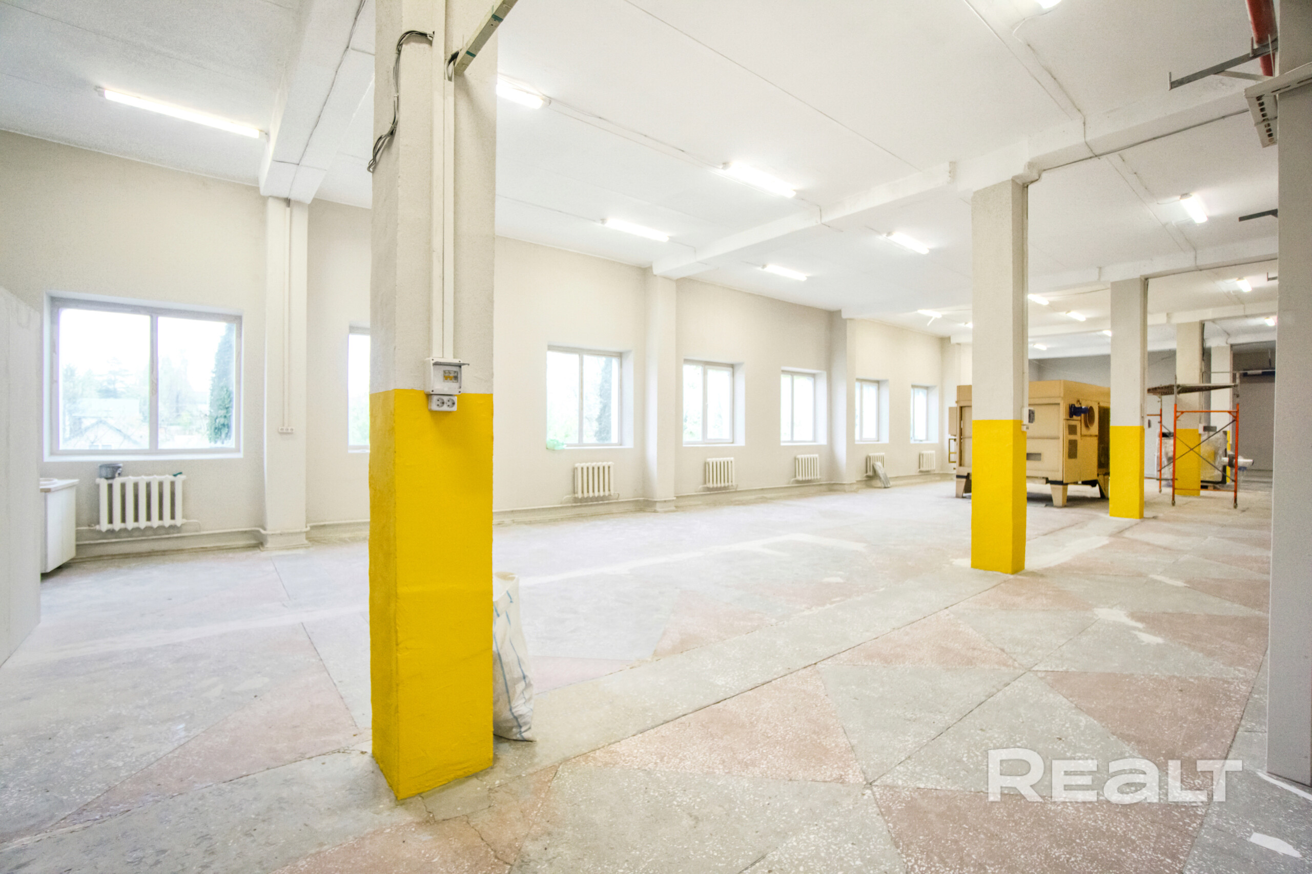 по адресу аг. Колодищи, ул. Марины Молокович 22высота потолков – 4,15 м. На территории расположена трансформаторная подстанция мощностью 120 кВт, отопление (собственная котельная). Имеется пожарная, охранная сигнализация, тельфер грузоподьемностью 1,5т, подъемная площадка 3т, стоянка для автотранспорта, погрузочная площадка для крупногабаритного транспорта, автопогрузчик. Территория охраняемая, доступ круглосуточный. Возможна аренда офисных помещений, столовой.