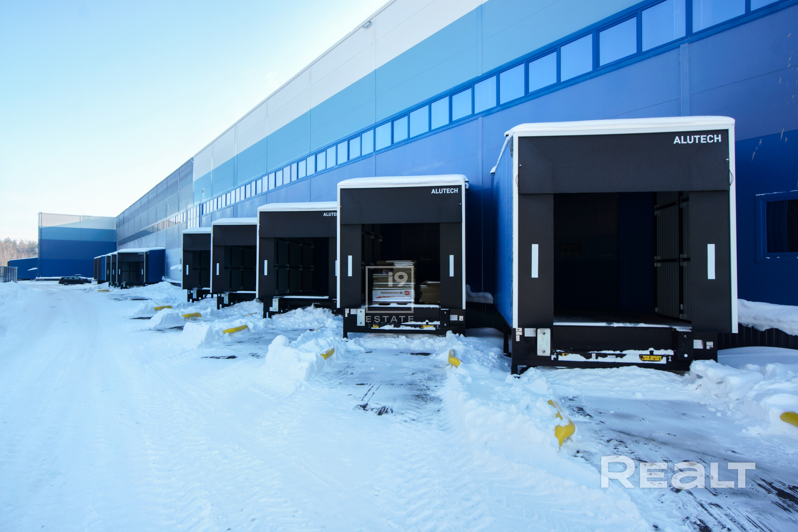 Рампы (герметизаторы проема ALUTECH) для каждого блока, наливной пол, высота потолков - 8,5 м, зарядная станция для электроштабелера, настраивая система отопления для каждого блока.