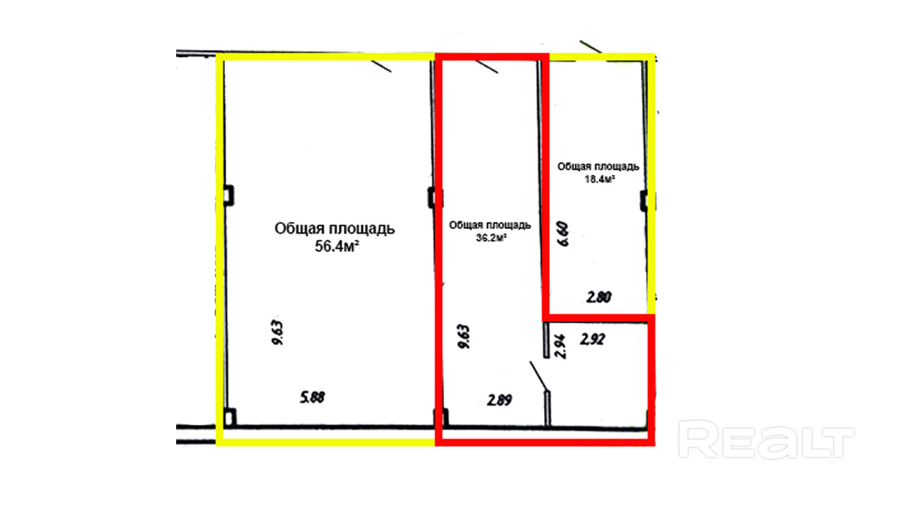 - Помещения 18,44 м2, 36,2 м2, 56,4 м2, 70,4 м2 .