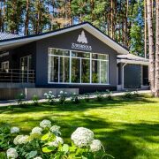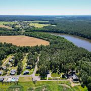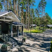 База отдыха круглогодичная и расположена в живописном сосновом лесу на берегу лесного озера. Она построена в 2022 году поэтому имеет современное и качественное оснащение.