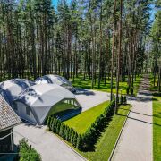 В загородном комплексе есть возможность провести масштабное мероприятие благодаря большому, современному и уютному шатру. Он вмещает в себя до 200 гостей и подходит для любого мероприятия: свадьбы, корпоративы, юбилеи, нового года и другого выездного банкета, поскольку в нём установлена большая профессиональная кухня. И что важно- в нём комфортно в любую погоду, так как помещение отапливается водяными полами. Большие панорамные окна из алюминия с завораживающими пейзажами никого не оставит равнодушными. В наличии посуда на 200 гостей, 3 кондиционера, огромный экран, профессиональное музыкальное оборудование. Также шатёр оборудован санузлами.