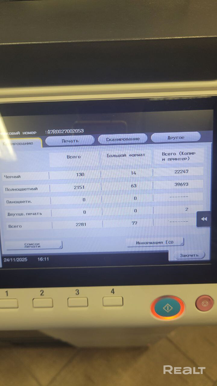 Продается готовый/действующий копицентр. Есть дополнительные фотографии с "пробегом" Konica Minolta С258 и Kyocera M3550. Epson L8050, ламинатор FGK 260, брошюратор, резак сабельный, степлер HD1224 - новые. Гос аренда, около 600р в месяц с коммуналкой, площадь 15кв.м. Место куплено с аукциона. Договор действует до марта 2028 года с пролонгацией. Работает полноценно около месяца. Нет свободного времени развивать сайт, корпозаказы, т.к. имеются бизнесы в других сферах.