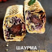 Меню: шаурма из мяса BBQ, изготавливаемого в смокере (рваная говядина, свинина и