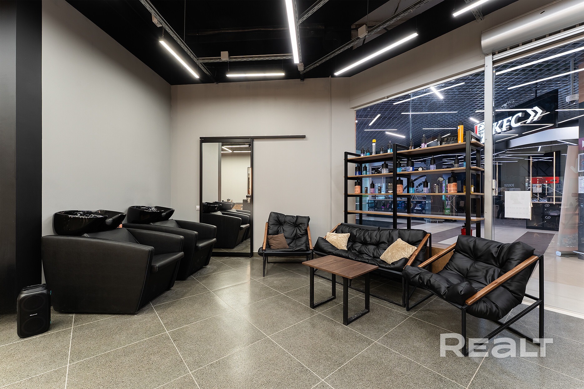 Парикмахерский зал: 4 полноценных рабочих места, оборудованное профессиональной мойкой.