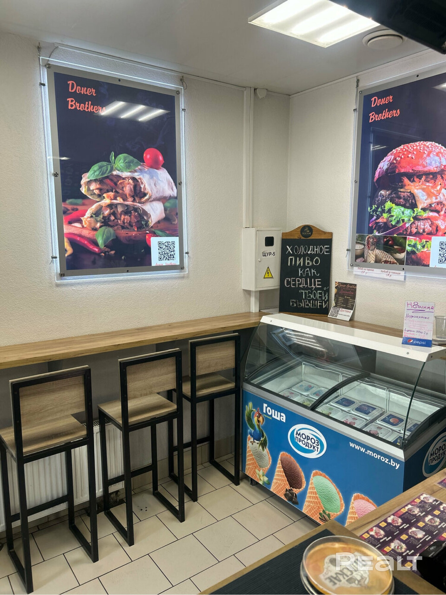 Продается кафе-шаурма с шикарным расположением-Евроопт, Аптека и т.д. Оживленный и густо населенный район. Площадь помещения около 40м2. Надёжный арендодатель, продление без проблем. Готовим: Шаурма, соус собственного приготовления, сами маринуем, сами жарим бургеры, хот доги, картошку фри. Хорошие отзывы. Кафе стабильно работает и приносит прибыль. Надёжный персонал. Оборудование в собственности. Передадим контакты надежных поставщиков. (цена 26000 долларов по курсу!)