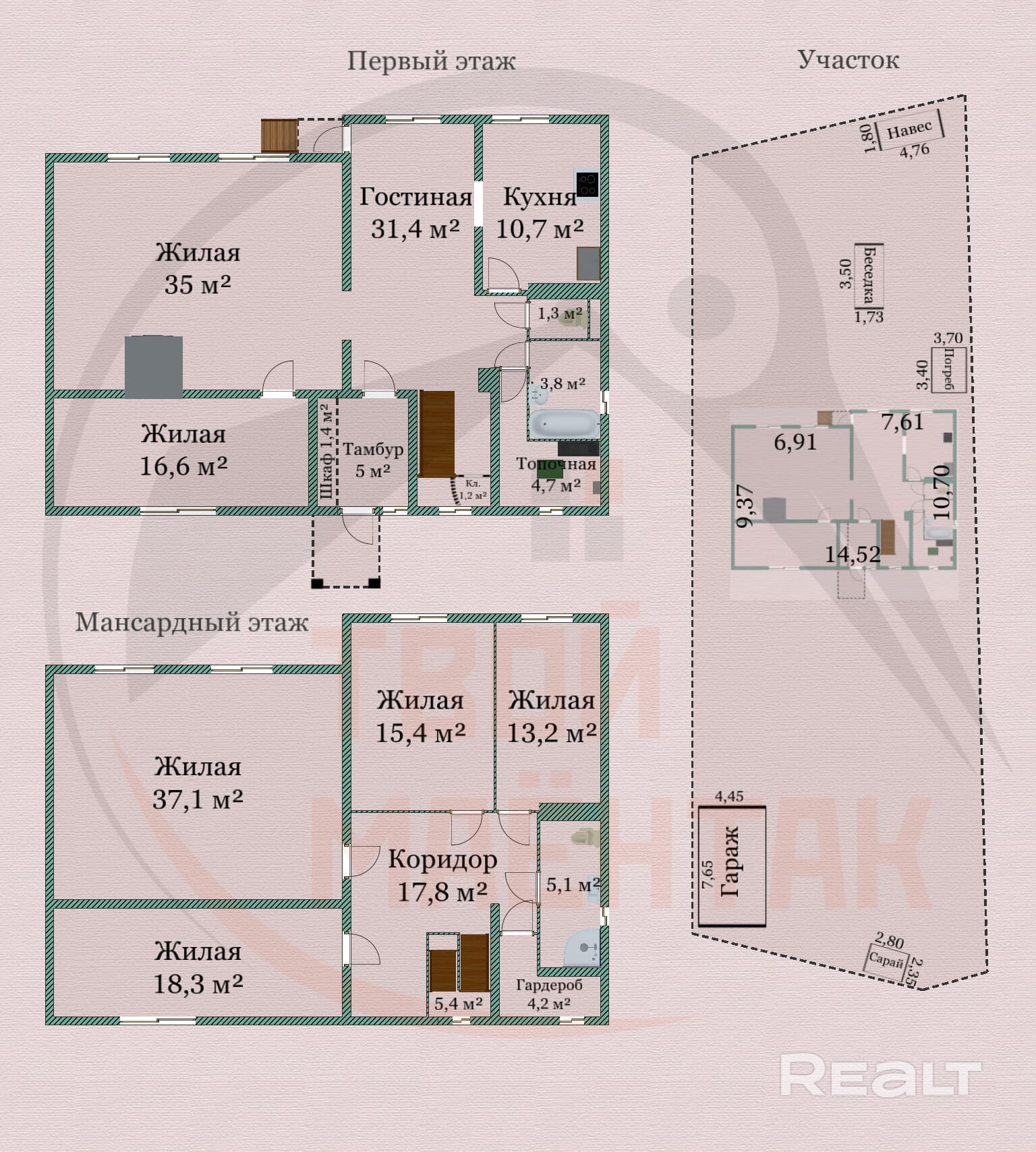- Площадь участка