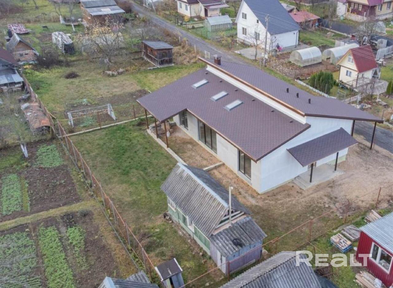 Современный 1-этажный дом 121 м² с террасой, 20 км от Минска Просторный дом 2022 г.п. с продуманной планировкой: гостиная с выходом на террасу, 3 спальни, 2 с/у, теплые полы, все коммуникации. Участок 6 соток рядом с лесом и рекой Волма. Асфальт до дома, охраняемое СНТ, рядом Минск и индустриальный парк «Великий камень». Отличный вариант для жизни и инвестиций!
