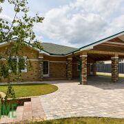 - Фундамент – монолитный бетон. Стены - энергоэффективный керамзитобетонный блок 300 мм. Утеплён минеральной ватой (плотность 150кг/м.кв.), обложен декоративной плиткой);