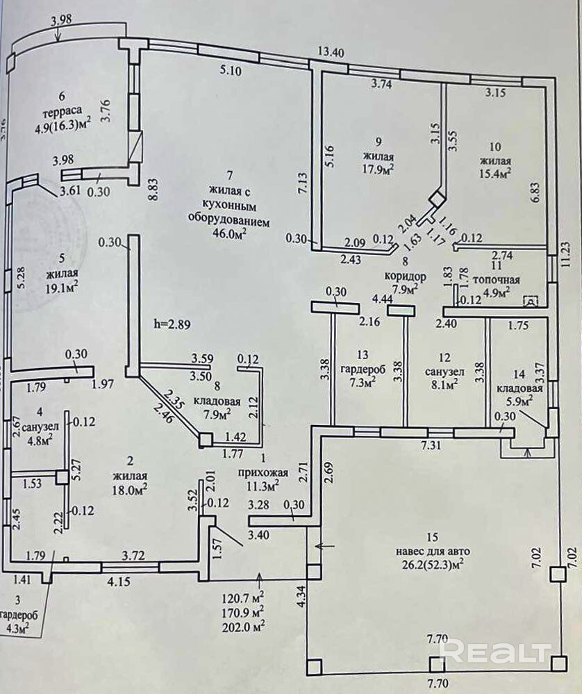 *Выдержаны все нормы и стандарты европейского уровня энергоэффективности- Общая площадь дома составляет 202 кв.м., жилая 120,7 кв.м., кухня 46 кв.м.; терраса с барбекю - 16,3 кв.м., навес под авто - 52,3 кв.м (наружная площадь - 283 кв.м.).