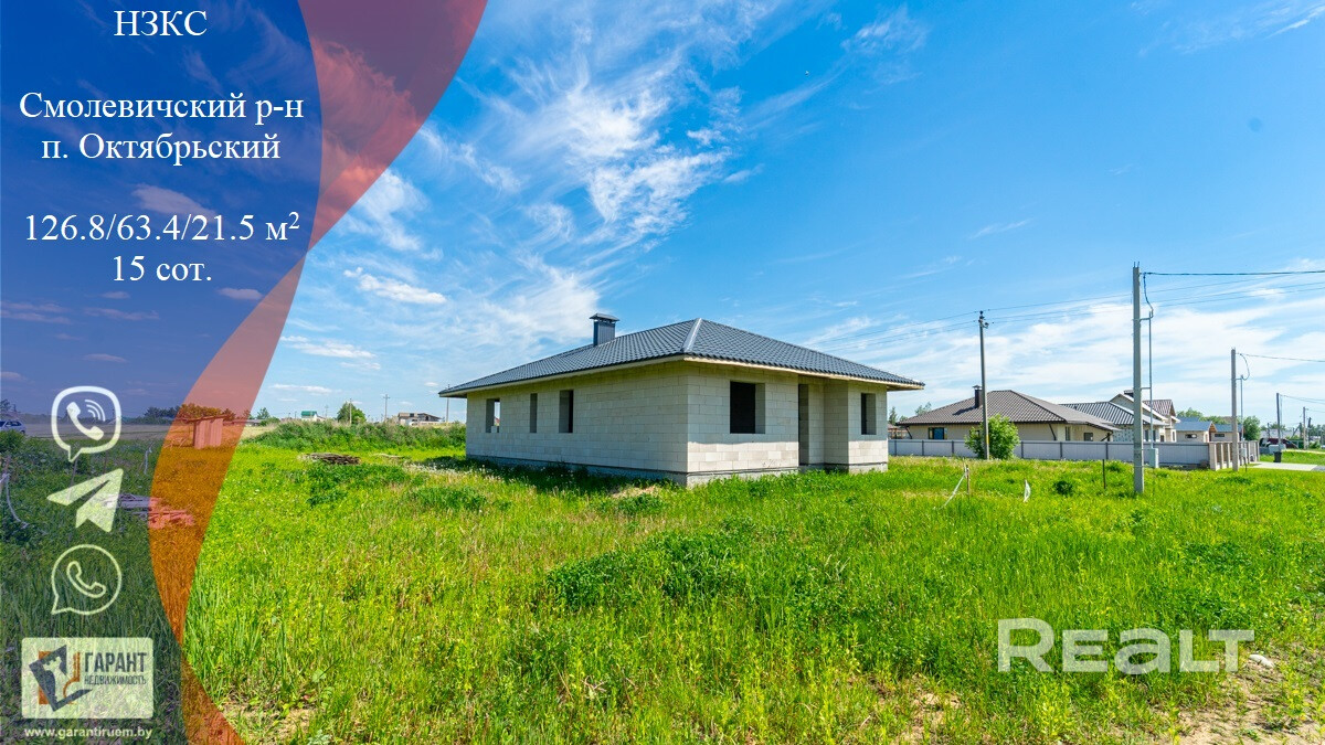Коттедж 2023 года постройки. Общая площадь дома составляет 126,8 квадратных метров, расположен на участке земли площадью 15 соток (частная собственность). Участок крайний угловой, правильной прямоугольной формы. Есть возможность присоединения участка земли под ЛПХ (около 5 соток), который располагается со стороны дороги.