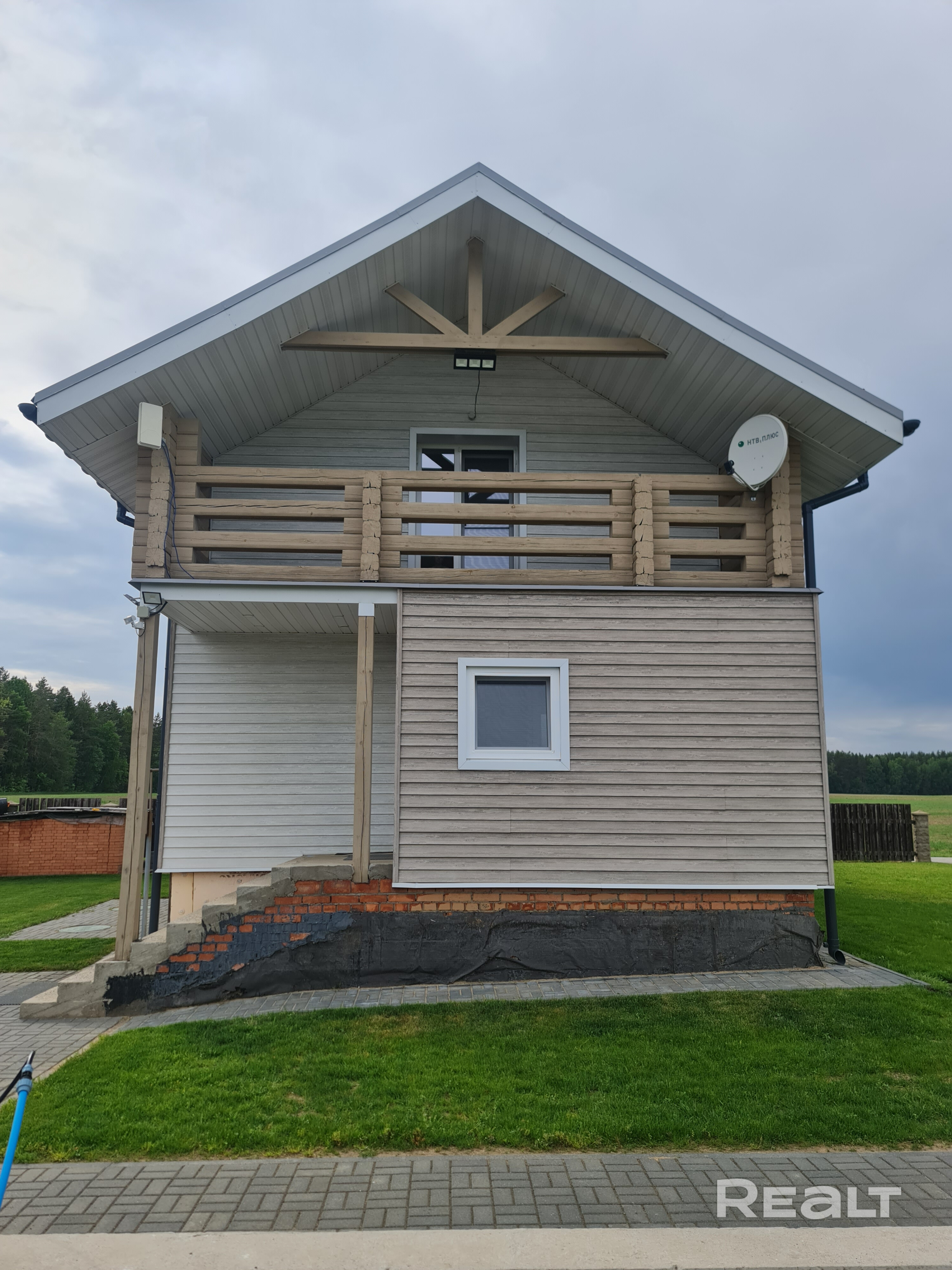 Участок правильной формы, огорожен, произведен правильный разуклон , зонирован плиткой. По периметру дома высажен качественный газон.