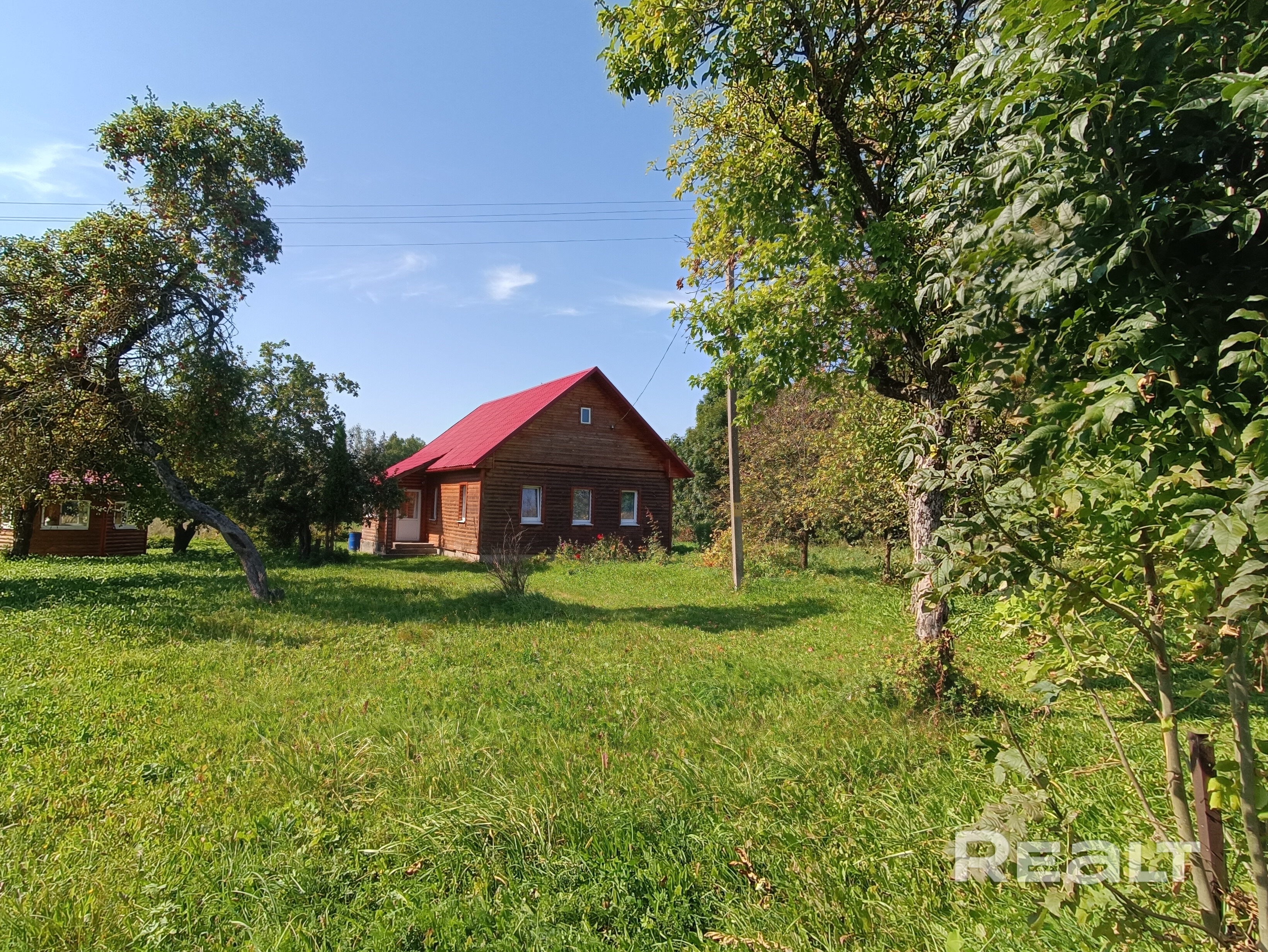 Беседка на фундаменте, 4х- скатная крыша. Стены блокхаус, полы- доска, окна ПВХ, есть электричество: розетки, выключатель, Дверь ПВХ- закрывается на ключ. Удобства: стены блокхаус, пол деревянный, крыша- черепица. Гараж- мастерская- блочный, подъемные ворота, отдельная входная дверь. Отличный вариант для загородного времяпровождения с семьёй, друзьями. Можно (нужно) ставить ульи, заниматься фермерством. Есть возможность дополнительно оформить землю под обработку (ЛПХ), в ЧС. Отличное место. Соседи- минчани.