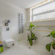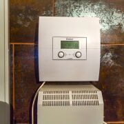 - Дом оснащен автономным газовым отоплением (теплый пол на первом этаже и батареи на втором и мансардном этажах). Для горячей воды используется бойлер.