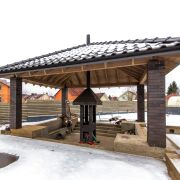 - В задней части дома расположены уютная беседка с зоной барбекю и фонтан, идеальные для отдыха с семьей или друзьями. Для любителей садоводства предусмотрена теплица.