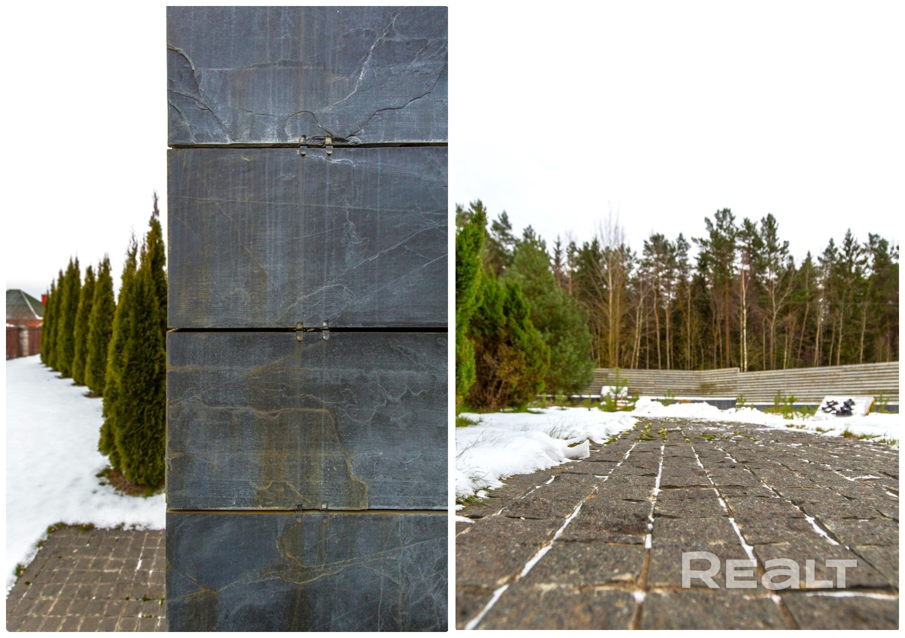 - Прекрасный двор с газоном, хвойными деревьями и декоративными кустарниками, уютные дорожки из натурального камня.